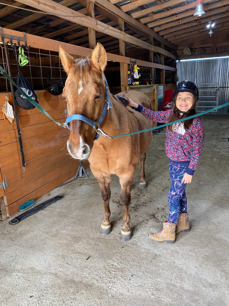 Horsemanship starts from the ground up. And that’s exactly where we start. We teach the importance of taking care of our four hooved friends and that involves cleaning hooves, brushing and looking over the animal to make sure they are good to saddle up. We go over a bit of the anatomy and other miscellaneous, just a little bit of everything horse related. Riding Basics are taught and skills progress at the comfort of the rider.
