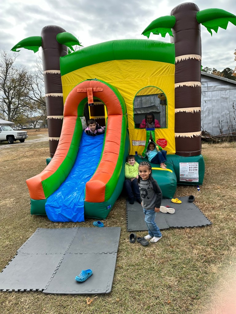 Sit and chat while you watch the kids burn out their energy in the bounce house. Or maybe you’d like to catch a safer bit of an adrenaline rush on the mechanical bull. Maybe it suits you better to sit under the Big Tree and enjoy the shade and hear the breeze rustle the leaves. We’d love to have you host here!